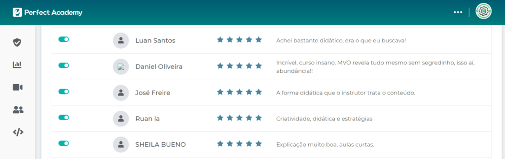 Avaliação do Curso (4,8/5)