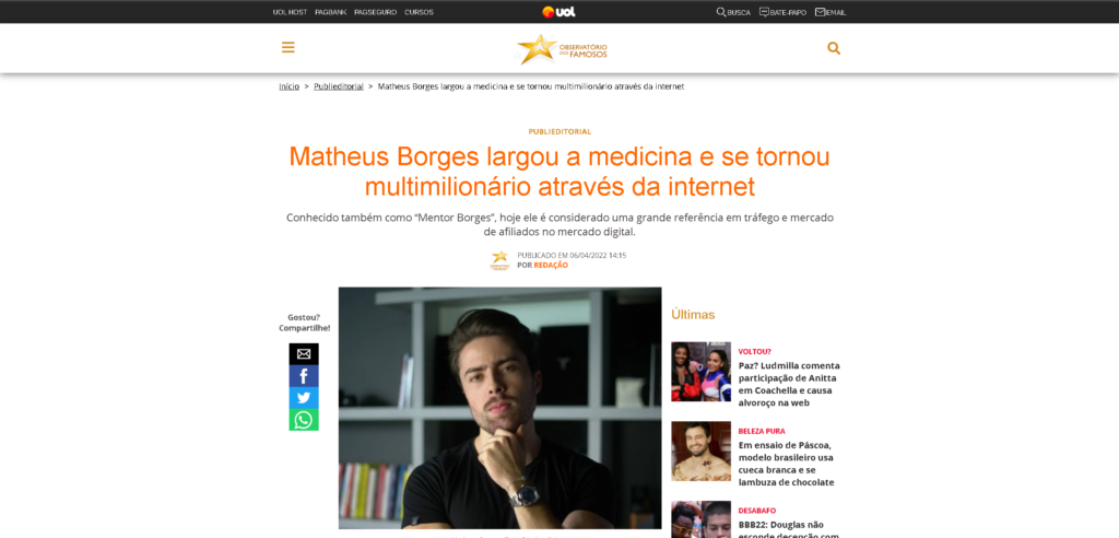 O que a mídia está comentando sobre Matheus Borges