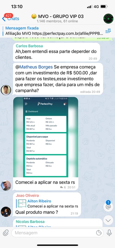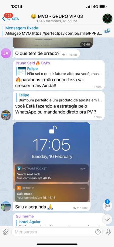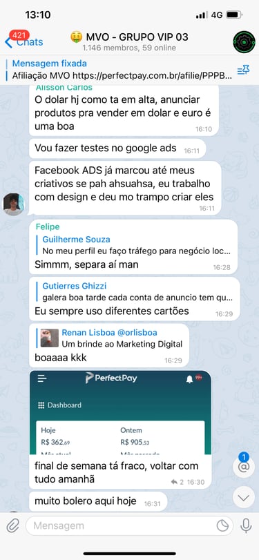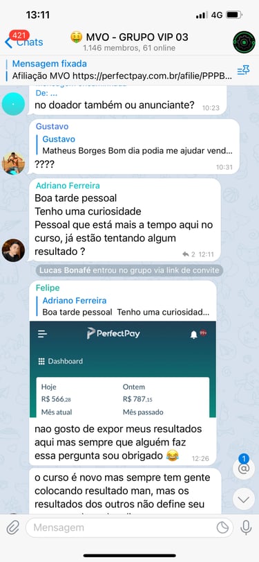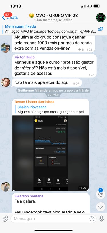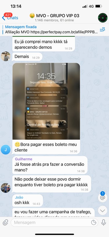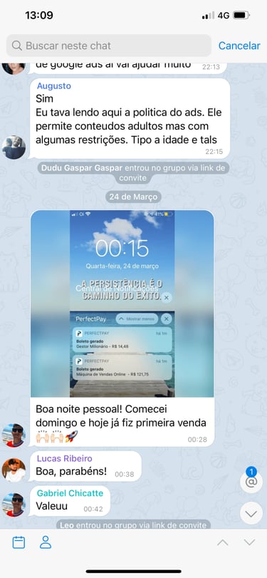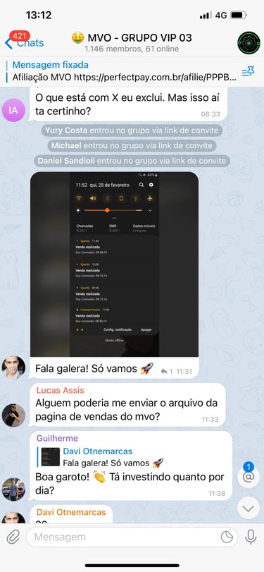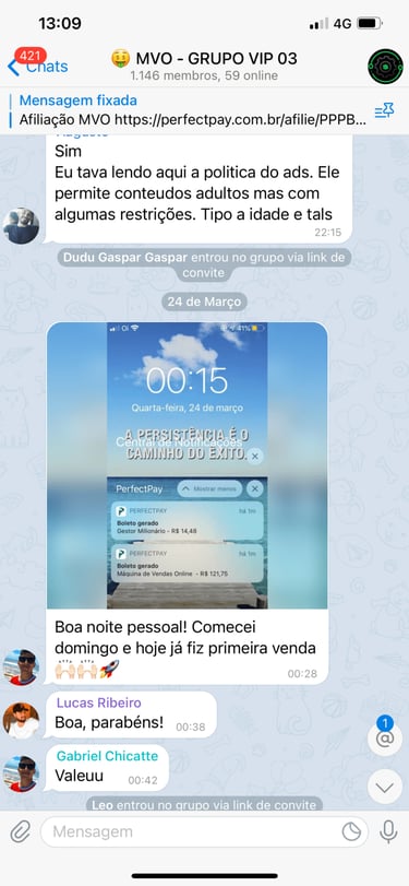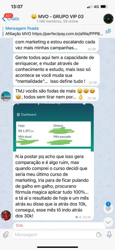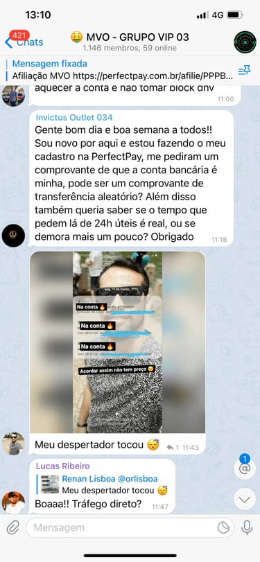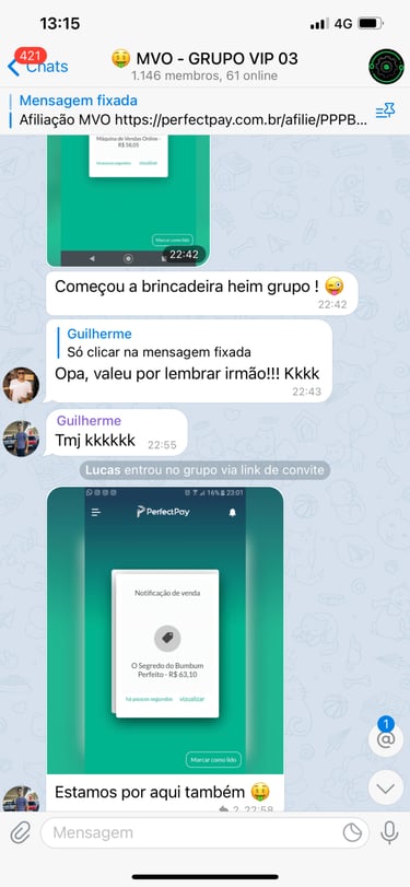 Acesso ao grupo privado no Telegram.